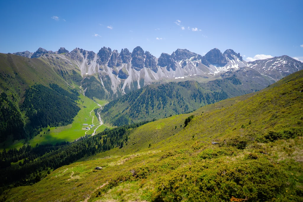 Mit einem Transfer fährst du nach Südtirol zur Rosskopfseilbahn, die dich hinauf auf fast 1.900 Meter bringt. Von dort führt ein aussichtsreicher Höhenweg mit sanften Anstiegen zu den Telfer Almen, bevor es am Nachmittag mit dem Linienbus nach Sterzing geht. Diese Etappe ins Ridnauntal verlangt gute Trittsicherheit und gilt als die anspruchsvollste der Reise. Wer es gemütlicher mag, wählt die Route bis zur Ochsenalm und kehrt von dort zurück. Anschließend geht es mit der Seilbahn nach Sterzing, wo dein Hotel im Herzen der nördlichsten Stadt Italiens liegt. Distanz ca. 12 km; Gehzeit ca. 5 h; Aufstieg ca. 350 hm; Abstieg ca. 850 hm. Fahrstrecke 45 km; Fahrzeit 1h. Verpflegung: Frühstück, Abendessen. Unterkunft: Hotel Lamm Nebenhaus o.ä., Sterzing.