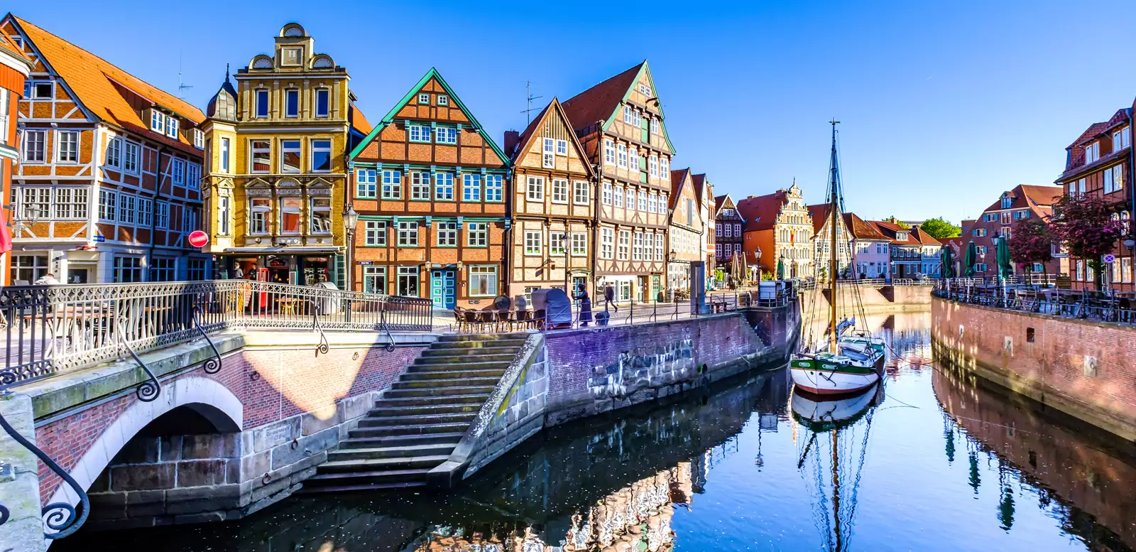 Die Este ist ein bezaubernder Fluss, der durch stille Wälder und Wiesen mäandert. Wir folgen seinem Lauf bis in die Hansestadt Buxtehude (GZ: 3 1/2 Std., +/- 50 m). Hier schlendern wir durch die alten Gassen und an den Kanälen entlang – was für eine prächtige Stadt!