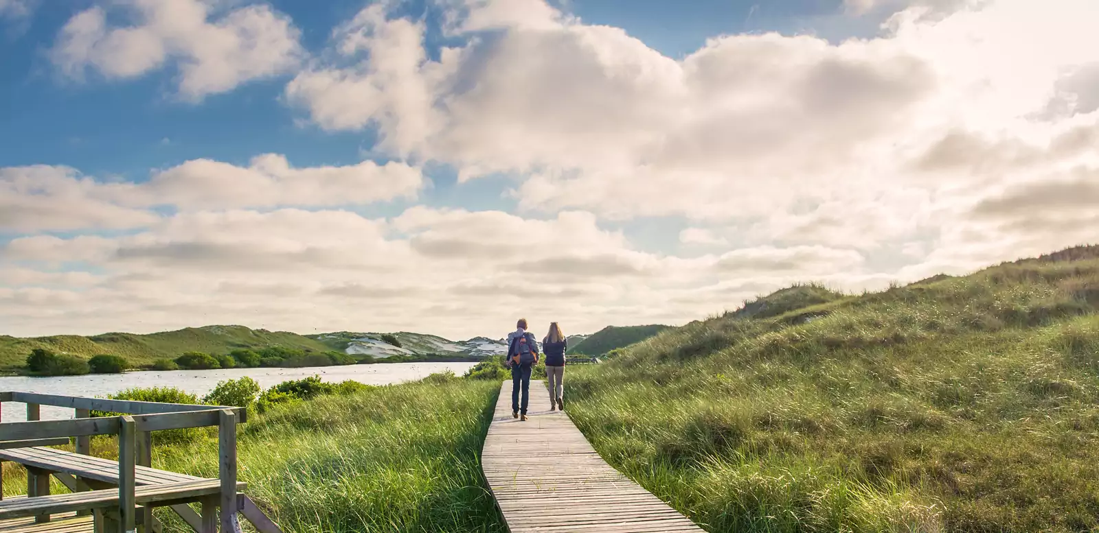Wir erkunden weitere Facetten der abwechslungsreichen Amrumer Landschaft: Von Wittdün aus laufen wir auf einem schönen Bohlenweg am Süßwassersee Wriakhörn vorbei, ehe wir auf dem einzigen wilden Dünenpfad Wüstengefühle bekommen. Wer mag, besteigt den höchsten Leuchtturm an der Schleswig-Holsteinischen Westküste. Dann gehen wir auf mediterran anmutenden Pfaden zwischen Wald und Dünen zum wild-romatischen Birken-Bruchwald der Vogelkoje. Nach einer stärkenden Picknickpause wandern wir zurück nach Norddorf (GZ: 3 1/2 Std.), wo wir im traditionsreichen Café Schult den Urlaub ausklingen lassen können.