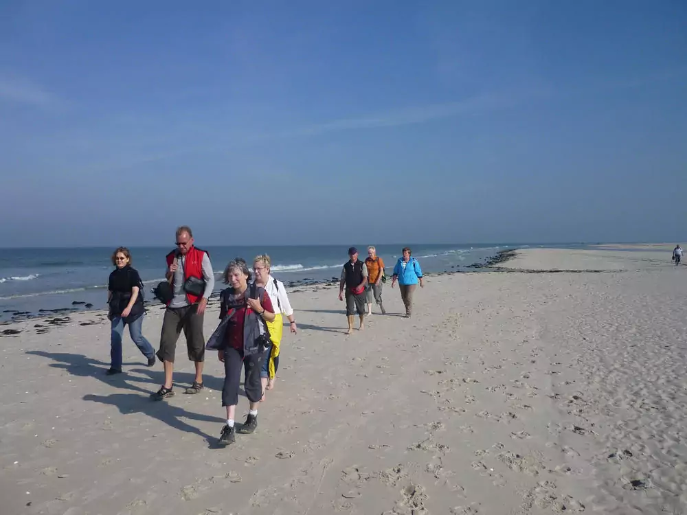 Heute umrunden wir die Amrumer Odde, eine der Kernzonen des Nationalparks „Schleswig-Holsteinisches Wattenmeer“. Über den Deich und am Spülsaum des Wattenmeeres entlang wandern wir, die Nachbarinsel Föhr stets im Blick, zur Nordspitze der Insel. Mit etwas Glück können wir hier große Vogelkolonien beobachten. Sobald wir die Odde umrundet haben, geht es an der Nordseebrandung Richtung Südwesten, bis zum Norddorfer Badestrand. Wer mag, kann in eines der dortigen Restaurants einkehren, bevor wir durch die Dünen gemütlich zum Hotel zurückwandern (GZ: 3 Std.).