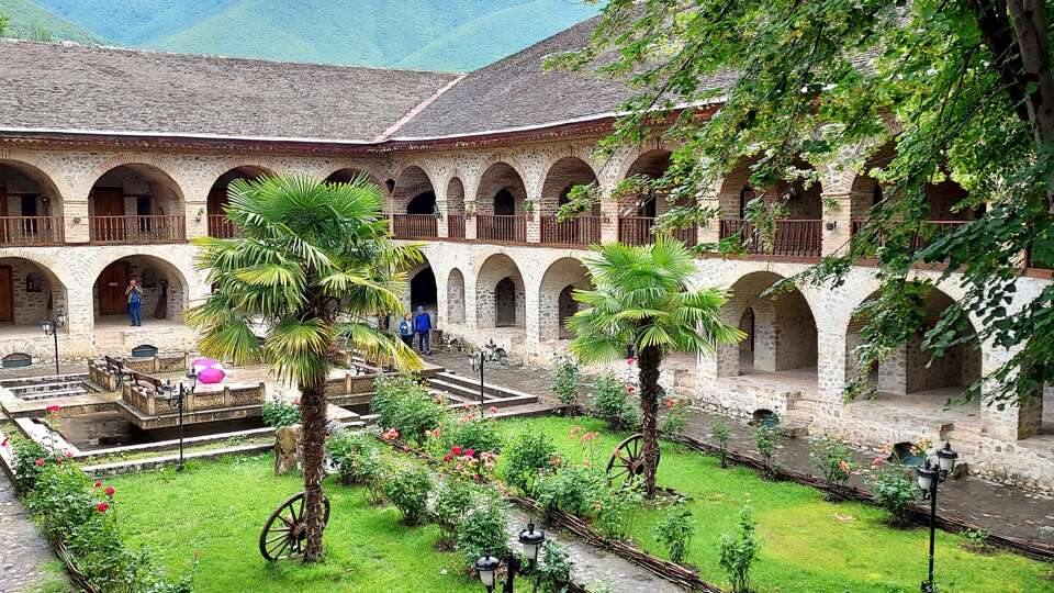 Im Dorf Sheki Halwa probieren und in einer restaurierten Karawanserei übernachten