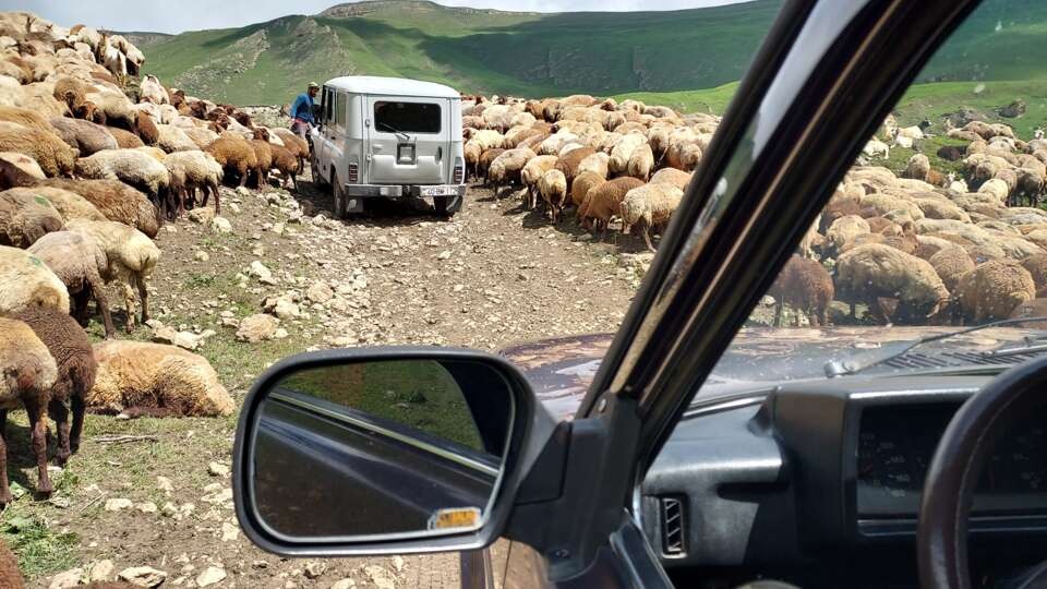 Am Morgen bringt uns eine kurze Fahrt zu einem schönen Aussichtspunkt auf ca. 3300 m. Von dort genießen wir bei passender Sicht den Blick auf die Berge Gizilgaya (3751 m), Bazarduzu (4466 m) und Shahdag (4243 m). Vom Aussichtspunkt starten wir die Wanderung in das Dorf Laza (ca. 1600 m). Durch imposante Berglandschaft bahnen wir uns unseren Weg. Der Pfad verläuft in leichtem Auf und Ab und nach einer Hangquerung erreichen wir das Skigebiet Shadag. Wir queren die Pisten und bewältigen zu guter Letzt noch einen steilen Abstieg. Mittag essen wir unterwegs in einem Hirtenlager. In Laza sind wir wieder in einem Homestay untergebracht.