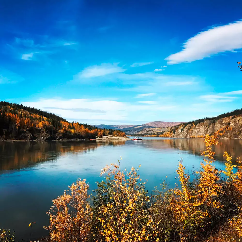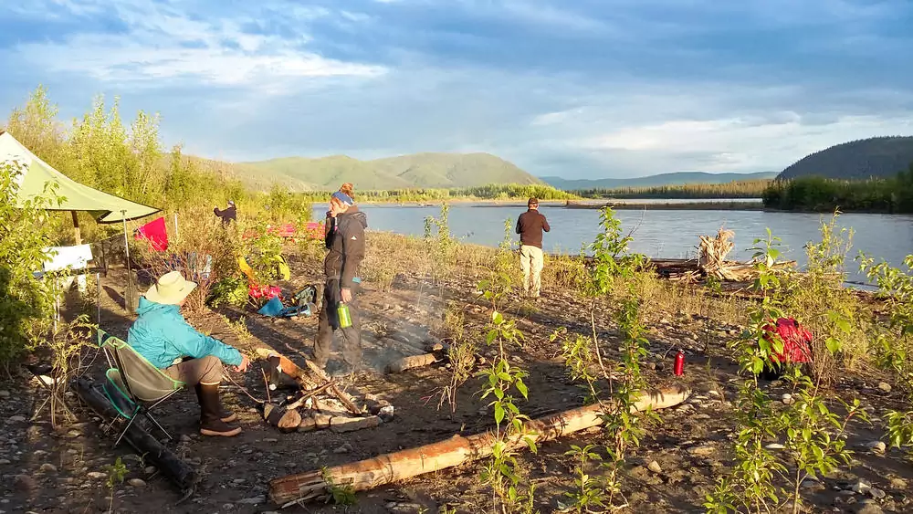 Auch Anfänger bewältigen die täglich durchschnittlich 5-6 Stunden auf dem Wasser erfahrungsgemäß mit Leichtigkeit. Natürlich werden regelmäßig Pausen eingelegt und wir haben immer wieder die Möglichkeit, uns die Beine zu vertreten. Vom Kanu aus und auf kurzen Landausflügen können wir Adler, Biber, Elche und manchmal sogar Bären beobachten. Gerade vom Kanu aus bestehen die besten Chancen, da man nahezu geräuschlos durch die atemberaubende Landschaft des Yukon gleitet. Nachmittags suchen wir uns eine sandige, bequeme Uferstelle oder Flussinsel aus, wo wir unser Camp errichten. Abends, in gemütlicher Runde am Lagerfeuer, entsteht unter leuchtendem Sternenhimmel eine Atmosphäre, die Jack London Ende des 19. Jh. in dieser Gegend genauso empfunden haben könnte. Wir erleben Kanada so, wie man es sich vorstellt – fernab der Zivilisation inmitten unberührter Natur. 5 Zeltübernachtungen am Ufer des Yukon River.