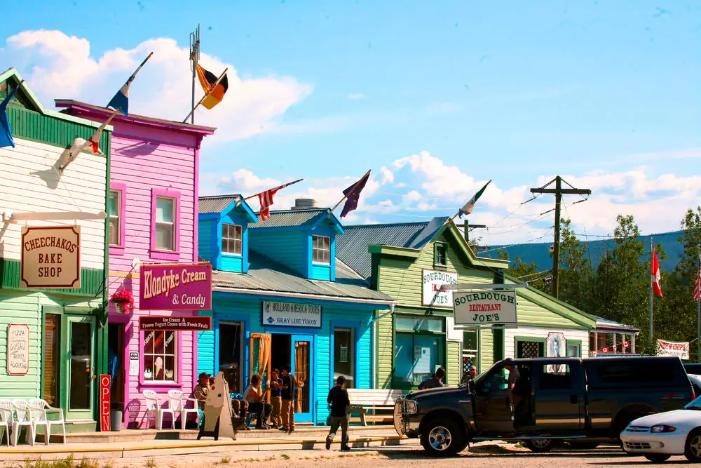 Heute paddeln wir die letzten Kilometer auf dem imposanten Yukon und erreichen schließlich Dawson City. Die Stadt erlangte während der Goldgräberzeit durch Schriftsteller wie Jack London weltweite Berühmtheit. Wir sehen unter anderem auch die Blockhütte, in der Jack London in dieser Gegend so nahe am Polarkreis überwinterte. Es lohnt sich allemal, gemütlich durch Dawson zu schlendern und die bunten Gebäude zu bestaunen - irgendwie scheint hier die Zeit stehen geblieben zu sein. Spätestens abends beim Casino-Besuch mit Cancan-Show kann man das Flair der Goldgräberzeit hautnah erleben (fakultativ). Hotelübernachtung in Dawson City. Ca. 30 Wasserkilometer.