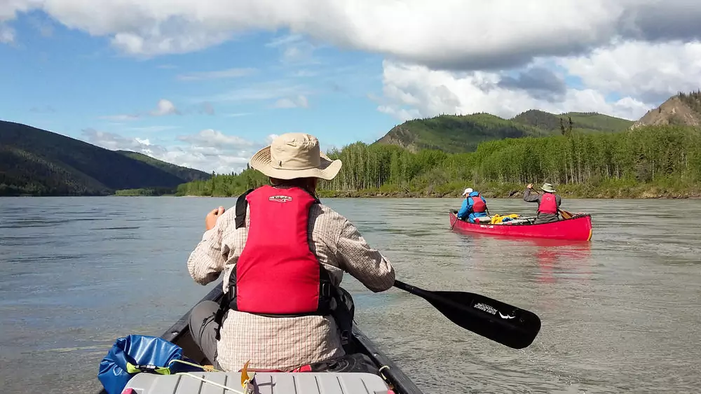 Am späten Vormittag erreichen wir den Ort Minto, wo unser Kanuerlebnis beginnt. Unser Gepäck, bereits verstaut in wasserdichte Behälter (Drybags), laden wir gemeinsam mit der Campingausrüstung in die Kanus. Die langsame Strömung in dieser Gegend ist gut geeignet, um ein sicheres Gefühl für Kanu und Fluss zu entwickeln. Uns erwarten insgesamt 300 km Wildnis und Freiheit. Ein unbeschreibliches Gefühl. Alle Etappen von hier bis Dawson City sind einfach (maximaler Wildwasserschwierigkeitsgrad 2 auf einer Skala von 1 bis 6). Unser Tagesziel liegt in der Nähe des Fort Selkirk, einem ehemaligen Handelsposten. Der Posten am Fluss wurde erst Mitte des 20. Jahrhunderts aufgegeben. Heute sind etliche Gebäude restauriert bzw. wieder aufgebaut worden. Natürlich werden wir Zeit haben, das Fort zu besichtigen und etwas über dessen Geschichte zu erfahren. Zeltübernachtung am Ufer des Yukon River. 200 km.