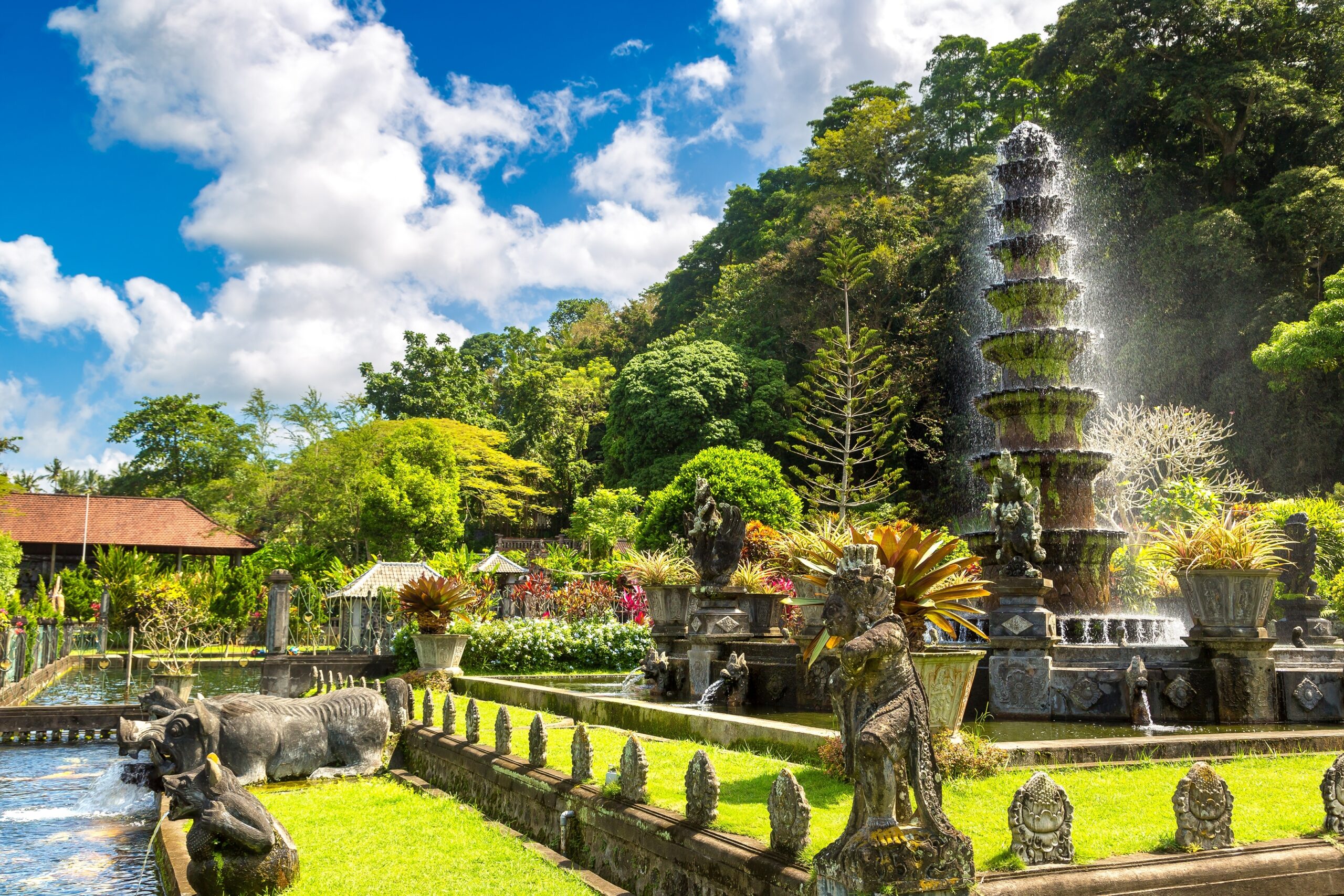 Heute erkunden Sie das Dorf Tirtagangga mit seinem Wasserpalast. Der Palast verzaubert mit seinen reich verzierten Pools, Springbrunnen und Statuen, die von üppigen Gärten und grünen Reisterrassen umgeben sind. Sie besuchen weiterhin den Taman Suksada Park, mit seiner Architektur, welche an die niederländische Kolonialzeit erinnert. Danach entdecken Sie den Fledermaustempel Goa Lawah und sehen die Fledermäuse in ihrer natürlichen Umgebung. Der Tag endet entspannt in Benoa. 3 Nächte dort. (F)