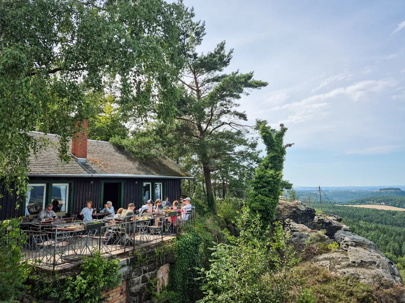 Eine kurze Bahnfahrt bringt Sie an die tschechische Grenze. Vom Elbufer steigen Sie auf zum Hochplateau, wo malerische Dörfer durchwandert werden. Besuchen Sie unbedingt die kunstvolle Bauernbarock-Kirche in Schöna – ein kleines Juwel. Nach einem steilen Anstieg auf den Papststein lädt die Baude direkt auf dem Gipfel zur Rast ein. Über den markanten Gohrisch, einen typischen Sandsteinberg, wandern Sie auf die Hochfläche und weiter in den Kurort Gohrisch. Hotelbeispiel: Parkhotel Margaretenhof Gehzeit 5,5 h; Strecke 17 km; Auf/Ab 550/400 HM
