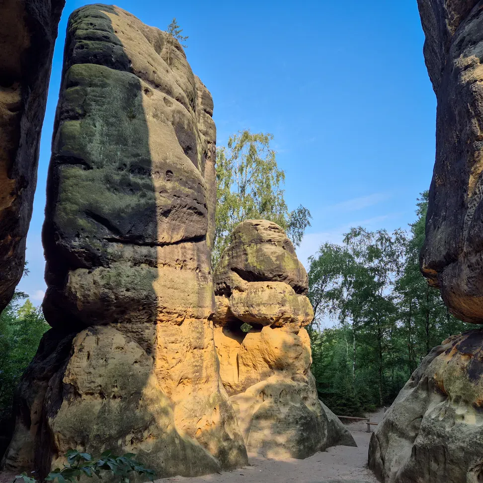 Über steile Stufen erklimmen Sie die Schrammsteine, wo sich ein überwältigendes Panorama aus bizarren Sandstein-Nadeln eröffnet. Der Gratweg schlängelt sich durch ein verwinkeltes Labyrinth, vorbei am Affenstein und ins Tal zum Lichtenhainer Wasserfall. Im Anschluss folgen Sie dem Malerweg bergauf zur eindrucksvollen Felshöhle Kuhstall. Genießen Sie abschließend die Fahrt mit der historischen Straßenbahn durch das Kirnitzschtal zurück an die Elbe. Hotelbeispiel: Elbhotel Bad Schandau Gehzeit 5,5 h; Strecke 16 km; Auf/Ab 600/500 HM