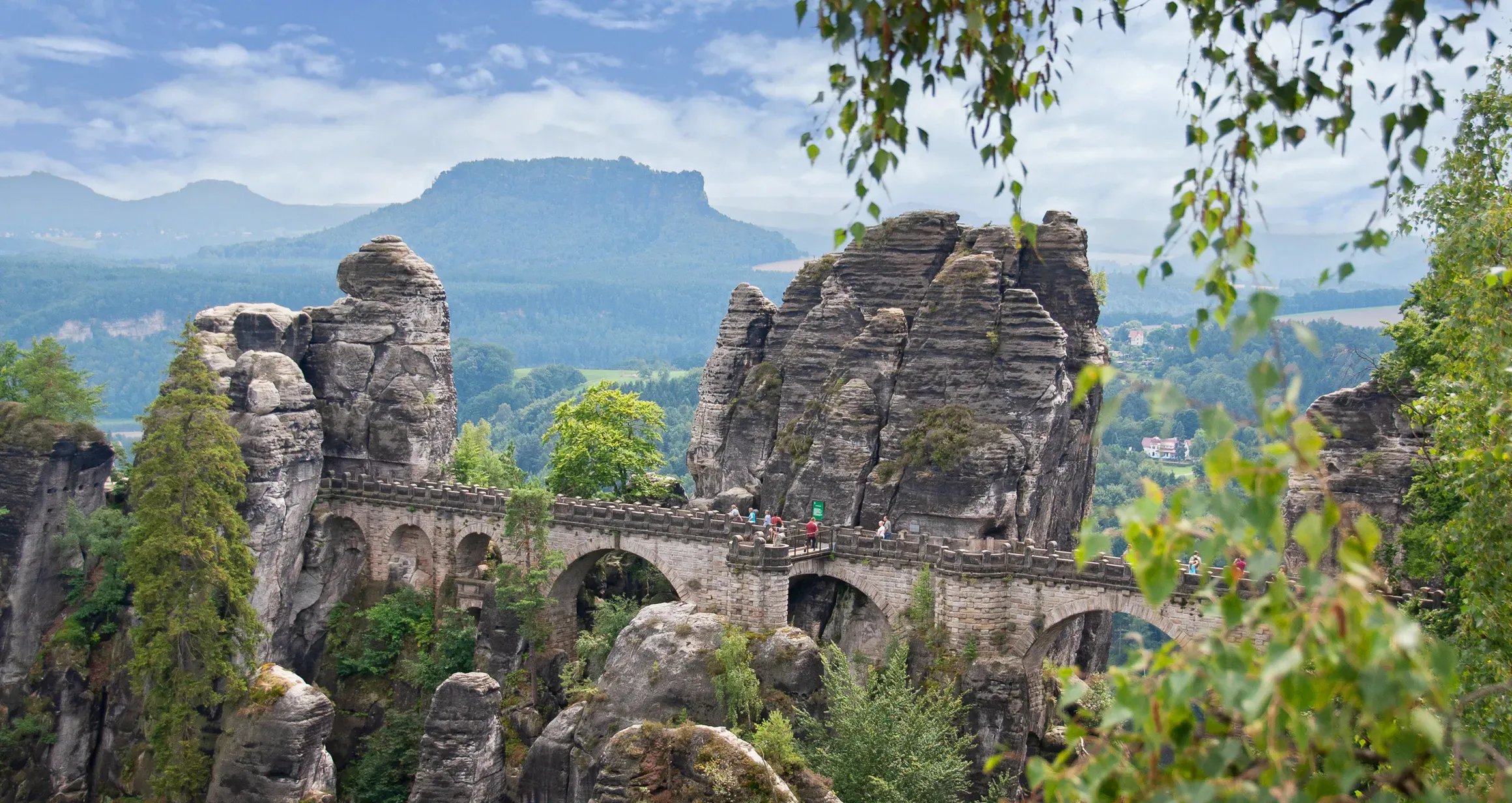 Hoch über dem Tal entdecken Sie historische Bauwerke wie Burgen, Festungen und Bastionen, allen voran die imposante Festung Königstein. Unvergesslich bleiben auch die berühmte Basteibrücke mit ihrem Panoramablick, die barocke Dorfkirche in Schöna sowie eine Fahrt mit der historischen Straßenbahn durch das wildromantische Kirnitzschtal. Fährüberfahrten auf der Elbe und entspannte Aufenthalte in den gastfreundlichen Kurorten entlang der Strecke runden diese erlebnisreiche Wanderwoche auf dem Malerweg im Elbsandsteingebirge perfekt ab.