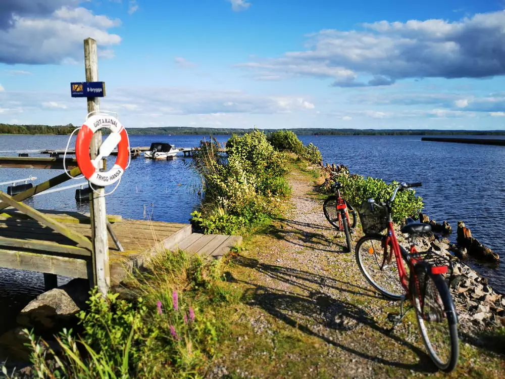 Heute erwartet uns ein ganz besonderes Abenteuer. Wir steigen in Tåtorp am malerischen Vikensee auf unsere Räder und folgen dem beeindruckenden Göta-Kanal, einem 200 Jahre alten Meisterwerk der Wasserbaukunst. Die fast autofreie Strecke entlang des Kanals begeistert durch kunstvolle Schleusen und blühende Wiesen: Wir radeln bis nach Sjötorp am Vänernsee. Hier fühlen wir uns, als hätten wir das unendliche Meer erreicht, und erleben die gewaltigen Ausmaße des Vänernsees hautnah (FZ: 3 Std., +/- 50 m). Auf dem Rückweg zum Hotel machen wir einen Fotostopp an der ältesten Bischofskirche Schwedens in Husaby.