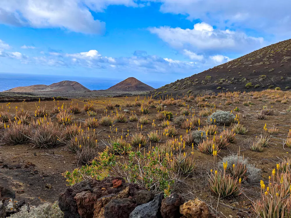 Das Gebiet zwischen El Pinar und La Restinga mit seinen unterschiedlichen Lavaformationen mutet an, als hätte die Eruption erst vor ein paar Jahren stattgefunden. Aschekegel, Vulkane, Stricklavafelder und Zackenlava liegen auf unserem Weg (GZ: 3 1/2 Std., + 300 m, - 830 m).