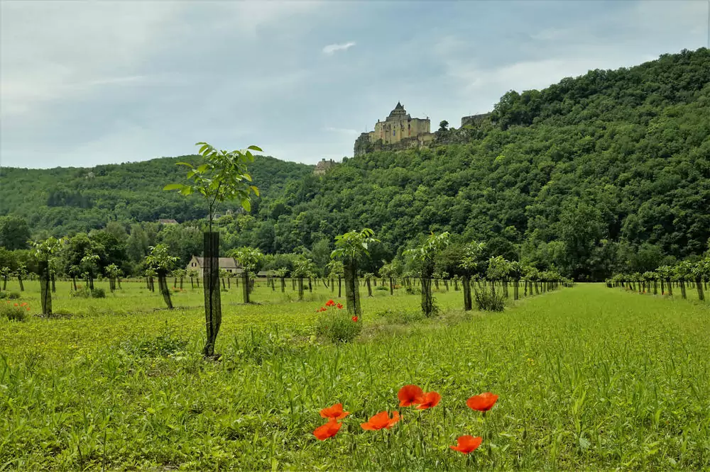Fahrt zur hoch über der Dordogne gelegenen Bastide Domme. Von den Terrassen des während des Hundertjährigen Krieges angelegten Festungsstädtchens genießen wir herrliche Ausblicke auf die träge dahinfließende Dordogne, hell schimmernde Klippen und grüne Hügellandschaft. Unser Wanderweg führt hinab an die Dordogne, an deren Ufer sich nun eine Burg an die nächste reiht. Von Castelnaud wandern wir, stets begleitet vom Rauschen des Flusses, bis ins ebenfalls von einer Burg gekrönte Beynac-et-Cazenac (GZ: 3 1/2 Std., + 180 m, - 250 m).