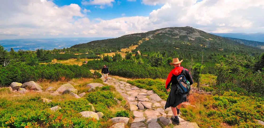 Die Krönung unserer Wanderwoche: Mit der Seilbahn fahren wir zum Kopa/Koppenplan. Von dort wandern wir zum höchsten Berg dieses Gebirgszuges, der Schneekoppe (1.603 m) – ein grandioses Panorama, ganz Schlesien liegt nun zu unseren Füßen! Danach Abstieg ins Tal (GZ: 4 Std., + 250 m, - 800 m).