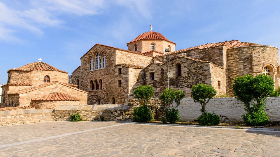 Wir durchqueren das fruchtbare Melanes-Tal, besichtigen den Kouros von Melanes und radeln entlang der markanten Marmorsteinbrüche bis nach Moni. Eine traumhafte Abfahrt in die Tragea-Ebene, unterbrochen von einem Besuch der byzantinischen Panagia Drossiani (älteste Kirche auf den Kykladen), bringt uns nach Chalki. Durch die Obstgärten von Potamia führt die Strecke zurück zur Küste. Badeaufenthalt. Im Oktober: Hotel Athina