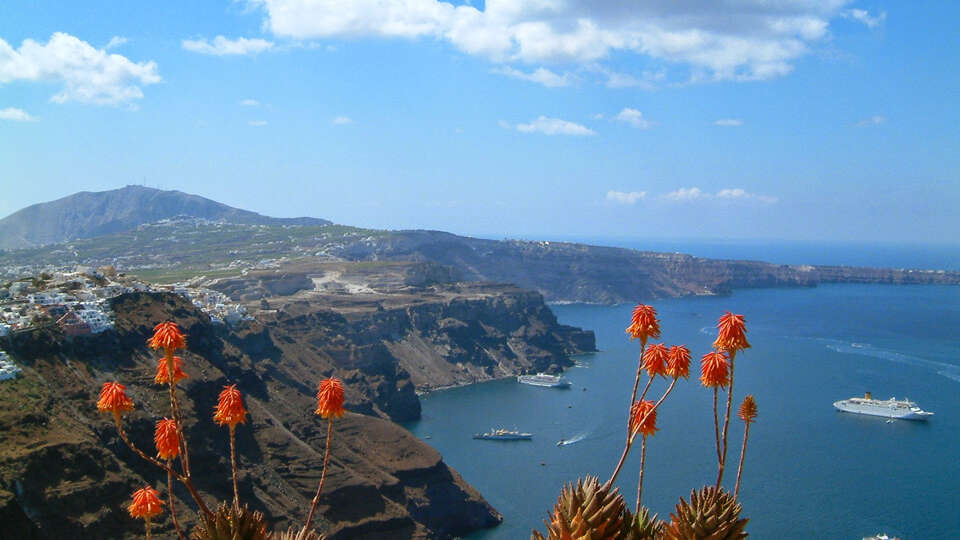 Abflug und Ankunft auf Santorin. Am Flughafen werden wir herzlich von unserem Reiseleiter empfangen und zum Hotel gebracht.
