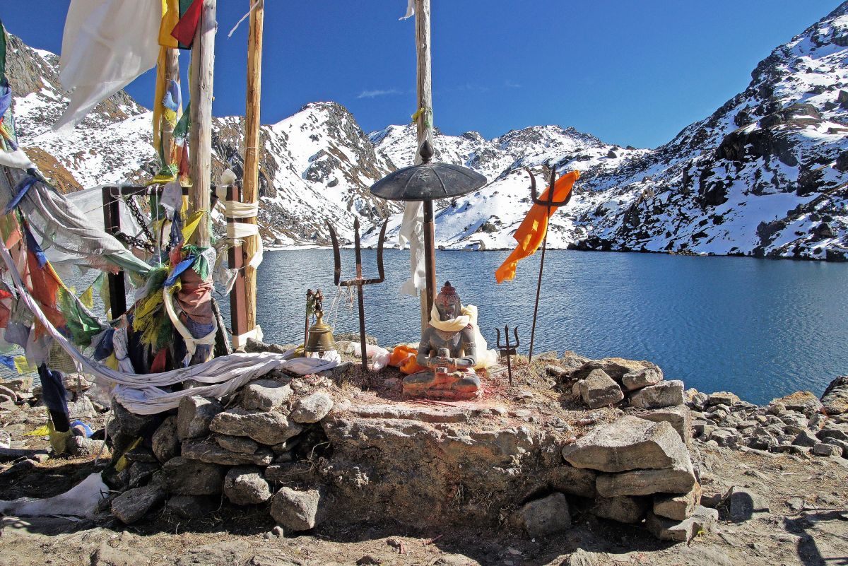 Der Weg führt Sie heute in einen Talkessel, in dem sich mehrere kleine Bergseen befinden. Anschließend steigen Sie hinauf zu Ihrem Tagesziel, den heiligen Seen von Gosainkund (4430 m). Am Seeufer quartieren Sie sich für zwei Nächte in einer einfachen Lodge ein. Wer möchte, kann am Nachmittag auf den benachbarten Bergrücken steigen und einen herrlichen Ausblick genießen. (Gehzeit ca. 3-4h, 610 m↑, 130 m↓).