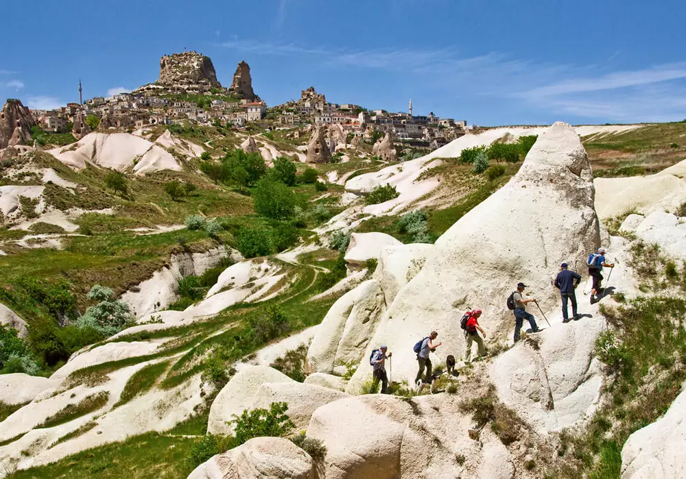 Das südlich von Ortahisar gelegene Tal erscheint wie eine kleinere Ausgabe der Ihlara-Schlucht. Entlang des Flussbettes sind zahlreiche Kapellen, Bergbehausungen und auch Taubenschläge zu sehen (GZ: 3 Std., +/- 100 m). Die Mittagspause verbringen wir in Mustafapaşa (Sinassos), einem Dorf, in dem Griechen und Türken bis zum Beginn des 20. Jahrhunderts Seite an Seite lebten. Die alten, reich mit Steinmetzarbeiten verzierten Häuser griechischer Bauart sind sehr sehenswert. Am Nachmittag wandern wir dann zurück nach Ortahisar (GZ: 2 1/2 Std., kaum Höhenunterschiede).