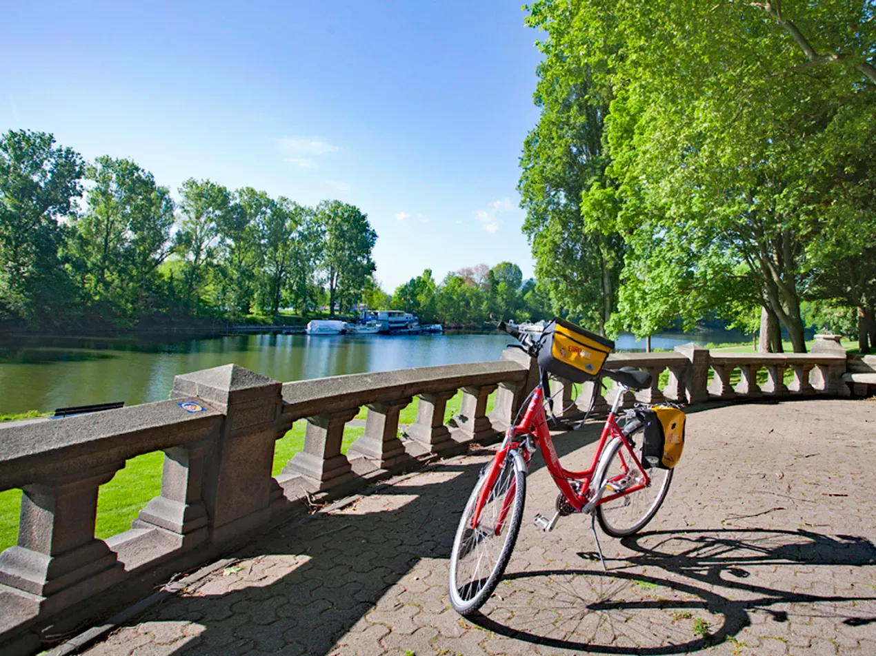 Sie verlassen Sie die Stadt Luxemburg über das tief eingeschnittene Tal des Flusses Alzette. Oben protzen Bauten wie Palais de Justice und Herzogspalast, tief unten wirkt die Stadt ganz dörflich. Kleine Häuschen mit Gärten scheinen fast ein wenig verloren in der Europastadt. Die Kasematten sind Zeugnis der alten Zeit. Die heutige Radroute durch Luxemburg verläuft gut ausgeschildert auf kleinen Landstraßen, über winzige Dörfer, durch hügelige Landschaft mit grünen Wäldern und bunten Feldern. Ein romantisches Panorama von Weinbergen und Wäldern umgibt die Stadt Remich wie ein Amphitheater mit der Mosel als Bühnenraum. Die 3 Kilometer lange und von Kirschbäumen gesäumte Uferpromenade lädt mit Cafés und Restaurants zu einem abendlichen Spaziergang ein. Übernachtung in Remich.