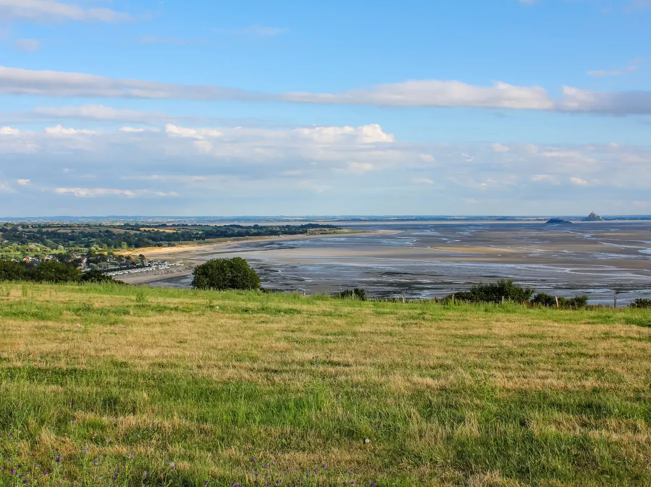 Von Dol de Bretagne gelangen Sie zum kleinen Massiv von Saint-Broladre, das sich mehrere Dutzend Meter über die Bucht des Mont-Saint-Michel erhebt und einen beeindruckenden Ausblick auf die bevorstehende Strecke bietet. Danach steigen Sie hinab zu den Poldern von Quatre Salines, wo sich die Landschaft auf faszinierende Weise entfaltet. Gehzeit 5 h, Strecke 20 km, Auf/Ab 220/220