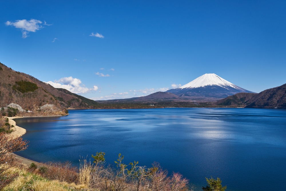 Panoramablick auf den Mount Fuji vom Motosuko-See