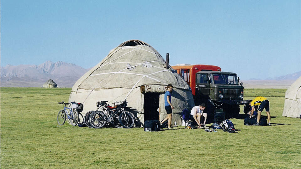 Am türkisblauen Gebirgssee Son-Kul und auf Sommerweiden der Nomaden radeln