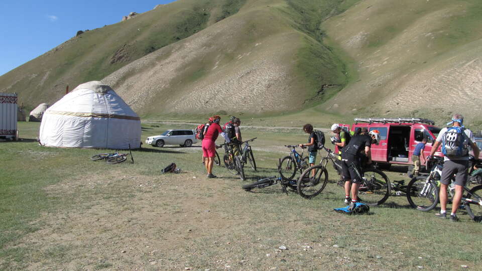 Wir bleiben drei Nächte in Tash-Rabat und unternehmen abhängig von der Wetterlage zwei Bike & Hike Tagestouren. Die Touren führen uns über Gras- und Schotterpfade mit kurzen Schiebepassagen auf 3.400 m Höhe und bieten einzigartige Ausblicke in die einsame Umgebung. Bei sehr gutem Wetter können wir auch einen 4.000er zu Fuß besteigen, wer möchte, kann hier auch das Bike mitnehmen.