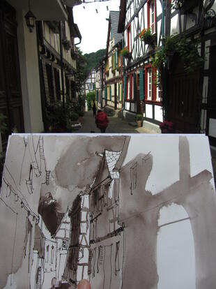 Das kleine Städtchen Unkel befindet sich zwischen Königswinter und Linz am Rhein und hat eine über tausendjährige Geschichte. Im 18. Jahrhundert hatten begüterte Familien hier ihre Sommersitze. Davon zeugen noch heute die malerische Uferpromenade, alte Gässchen mit historischen Fachwerkhäusern und die Pfarrkirche St. Pantaleon. Lassen Sie sich bei Ihrem Kreativurlaub am Rhein mit den Malkursen in Aquarell und Zeichnen von der pittoresken Umgebung inspirieren.