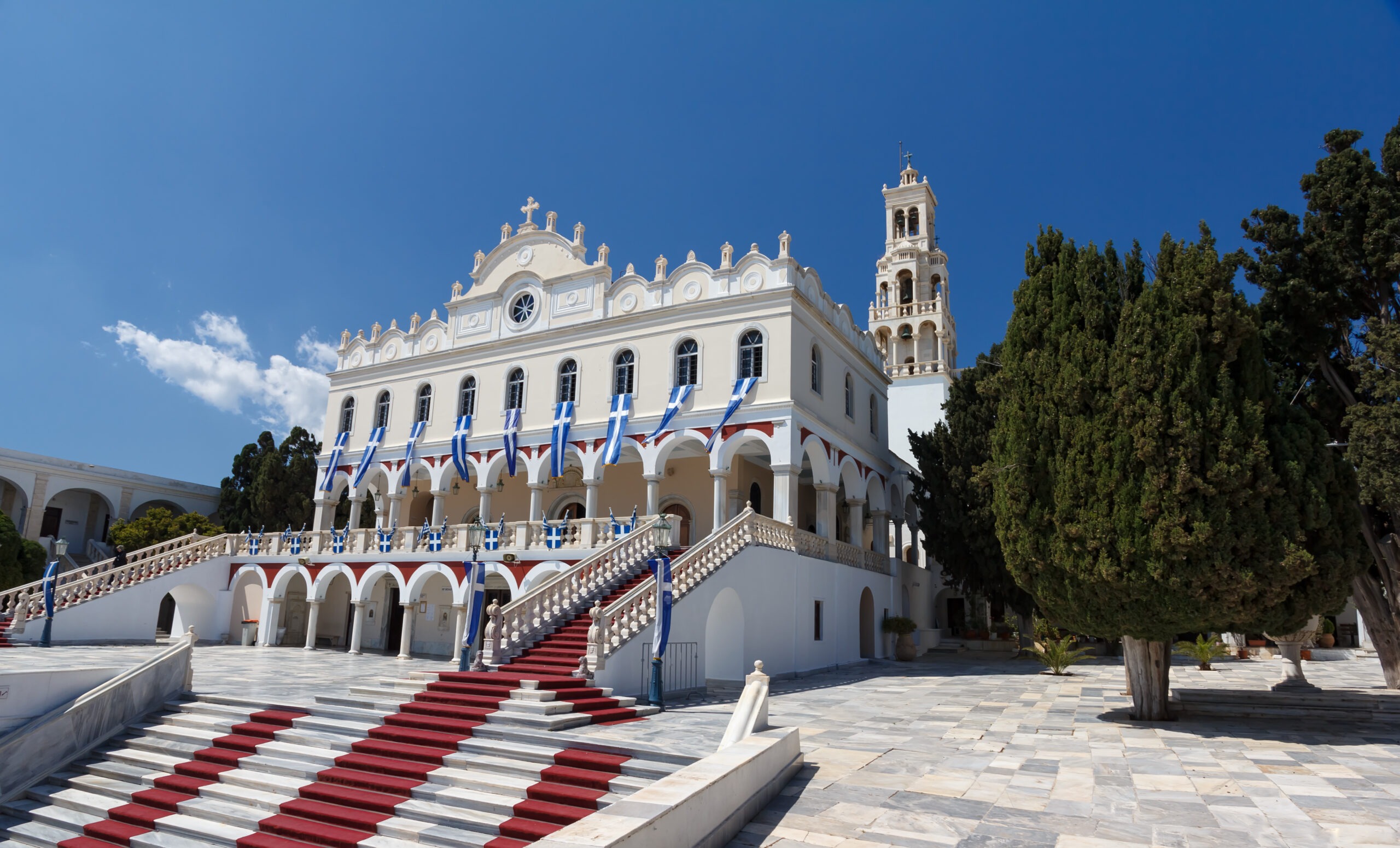 Früh am Morgen machen Sie sich mit der Fähre auf den Weg nach Tinos. Ihre Entdeckungstour beginnt mit einer Rundfahrt. Die wilde Schönheit der Insel mit ihren ca. 600 Taubenhäusern, eindrucksvoll geformten Felsen und ansprechenden Stränden wird Sie begeistern. Tinos ist auch als die Insel des Marmors bekannt. Seit der Antike wird dort weißer und grüner Marmor abgebaut. Der edle Stein schmückt Gassen, Brunnen und Häuser der Insel. Anschließend lädt das Kloster Kechronvouni Sie ein, Interessantes über seine Gründung und Geschichte zu erfahren. Etwa 40 Nonnen leben hier noch heute in einem der größten Klöster Griechenlands. Mit einem Streifzug durch die Altstadt zeigt Ihnen die Reiseleitung nachmittags, wo sich die Einheimischen mit lokalen Produkten eindecken. Genießen Sie eine kleine Kostprobe! Danach erfahren Sie, warum der Beiname von Tinos „Insel der Jungfrau Maria“ lautet: An der Wallfahrtskirche Evangelistria, der Kirche der Muttergottes, können Sie meist zahlreiche Pilger beobachten, wie sie auf Knien die Stufen zur Kirche erklimmen. Nach dem Glauben der orthodoxen Christen ist die Marienikone, welche in der Kirche einen Ehrenplatz einnimmt, wundertätig. 1 Nacht auf Tinos. (F)