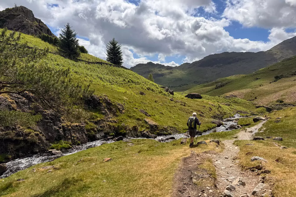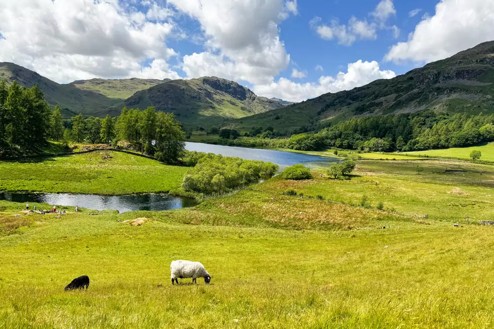 Zu den schönsten Tälern des Lake Districts zählen das Great und Little Langdale, die wir auf einer herrlichen Runde kennenlernen. Wir starten beim See Elter Water, an dessen nördlichem Ufer wir bald den gleichnamigen Ort erreichen. Wir folgen dem Fluss durch das Great Langdale mit tollen Ausblicken in die Bergwelt, die beim Anstieg hinauf zu einem Pass immer spektakulärer werden. Der anschließende Abstieg am Blea Tarn (tarn = kleiner See) vorbei führt uns ins Little Langdale. Wir überqueren beim gleichnamigen Tarn den Fluss Brathay (Bademöglichkeit) und erreichen unser Ziel, den Pub Britannia Inn mit seinem Biergarten in Elterwater (GZ: 4,5 Std., +/- 170 m).