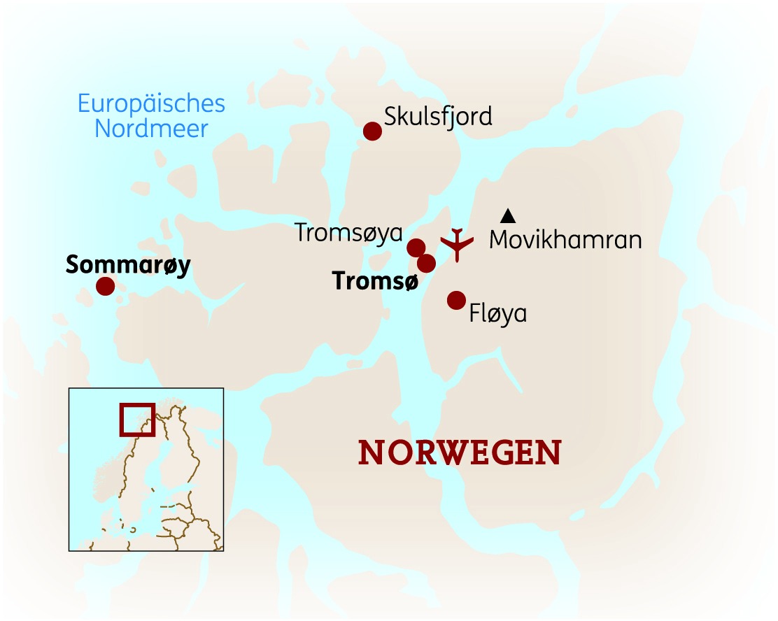 Bei dieser 8-tägigen Rundreise erleben Sie die abwechslungreiche Natur Nordnorwegens hauptsächlich zu Fuß – bei moderaten bis anspruchsvollen Wanderungen. Freuen Sie sich auf eine spektakuläre Gebirgs- & Fjordlandschaft, die seinesgleichen sucht. Ihre Basis ist zunächst die beschauliche Stadt Tromsø, das Tor zur Arktis, bevor Sie zum Ende der Reise noch zwei Nächte auf der idyllischen Halbinsel Sommarøy verbringen. Die Möglichkeit im Herbst die Nordlichter zu erleben, macht das Reiseerlebnis vollkommen!