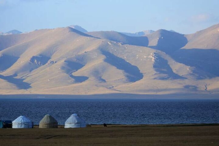 Wanderreise entlang der antiken Seidenstraße von Buchara über Samarkand nach Taschkent und zu den Seen Songköl und YssykkölTürkisblaue Mosaike bedecken die Kuppeln der Moscheen und unterscheiden sich kaum von der Farbe des Himmels. Ockerfarbene Bauwerke leuchten Ton in Ton mit der Erde in der untergehenden Sonne und auch die Kamele, die kauend vor den Mauern...