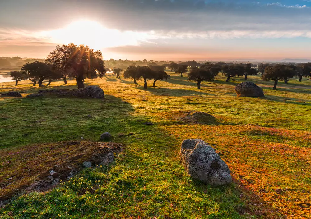 Auf alten Pfaden wandern wir durch die weitläufigen Dehesas, geprägt von majestätischen Eichen und ruhiger Weite (GZ: 3 Std., - 250 m). Wer mag, taucht danach optional in eine märchenhafte Höhle aus 1.001 Nacht ein oder genießt den Spa-Bereich unseres Hotels.