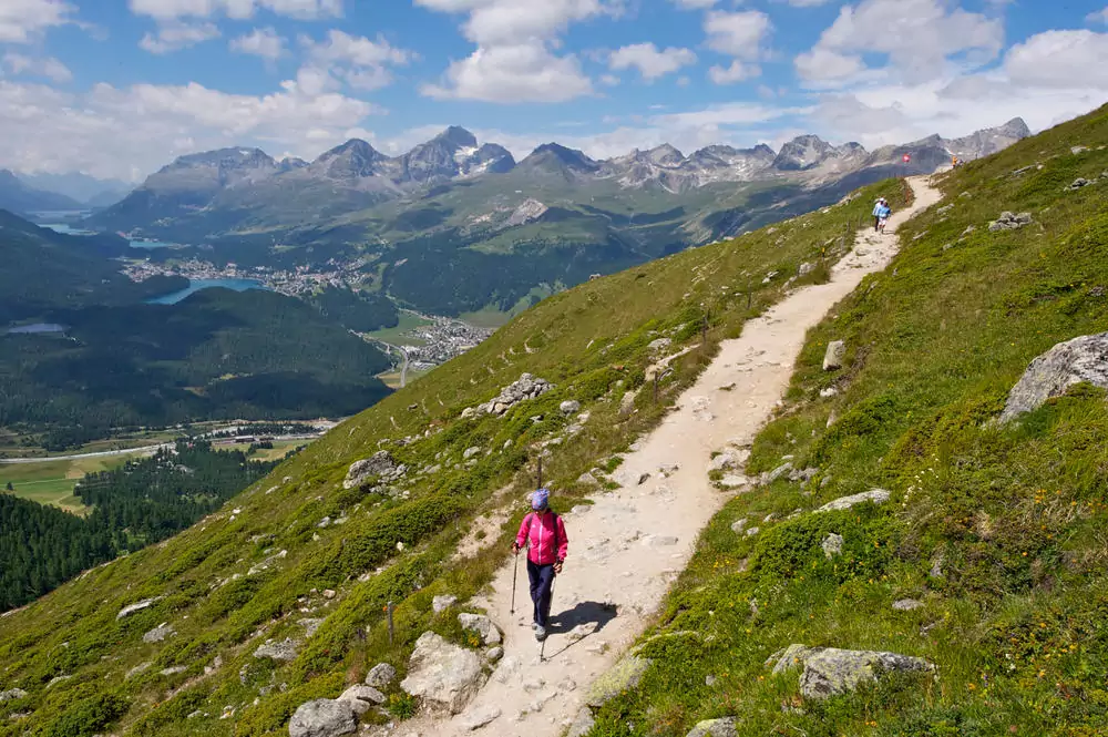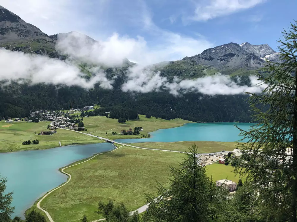 Mit der Signalbahn fahren wir zur Bergstation und wandern auf einem der landschaftlich schönsten Teilabschnitte der Via Engiadina. Der Wanderpfad schlängelt sich im leichten Auf und Ab am Hang entlang und gewährt uns schöne Ausblicke auf die Oberengadiner Seen und die Berninagruppe. Am Ufer des Silser Sees endet unsere Wanderung (fakultativ kann sie noch bis zum Malojapass verlängert werden). Rückfahrt zum Hotel (GZ: 3 1/2 Std., + 100 m, - 300 m).