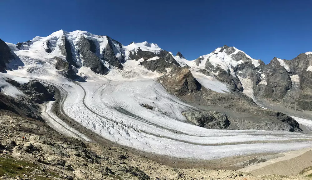 Transfer zur Diavolezzabahn und Bergfahrt. Oben angekommen, stehen wir dem Piz Palü gegenüber - was für ein Ausblick! Wir besteigen zwei leichte Dreitausender, den Sass Queder (3.065 m) und Munt Pers (3.206 m). Der Munt Pers gilt als einer der schönsten Aussichtspunkte im Oberengadin: Die Gipfel und Gletscher der Berninagruppe sind zum Greifen nahe. Ohne Gletscherausrüstung kommt man nicht näher an sie heran. Ein herrlicher Gipfel- und Panoramatag (GZ: 3 Std., +/- 360 m)!