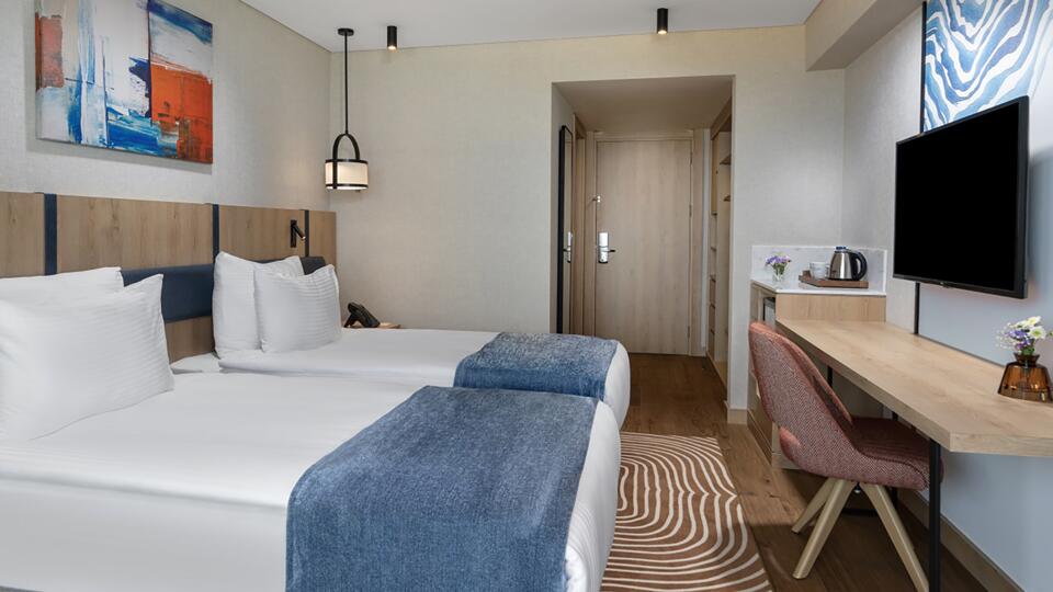 In leicht erhöhter Lage oberhalb des Yachthafens erhebt sich der strahlend weiße Hotelbau des 5-Sterne Hotels Elite World Kusadasi mit seinen 102 in hellen Farben gehaltenen Zimmern mit Balkon. Zwei Restaurants bieten türkische und internationale Küche, zwei Bars stehen Ihnen für einen entspannten Tagesausklang offen. Neben dem Swimmingpool mit Sonnenterrasse verfügt das Hotel über einen Fitness- und Spa-Bereich mit Innenpool und Sauna. Über die Uferpromenade erreichen Sie nach einem kurzen Spaziergang den öffentlichen Strand und das Zentrum von Kusadasi mit seinen zahlreichen Restaurants und Cafés.