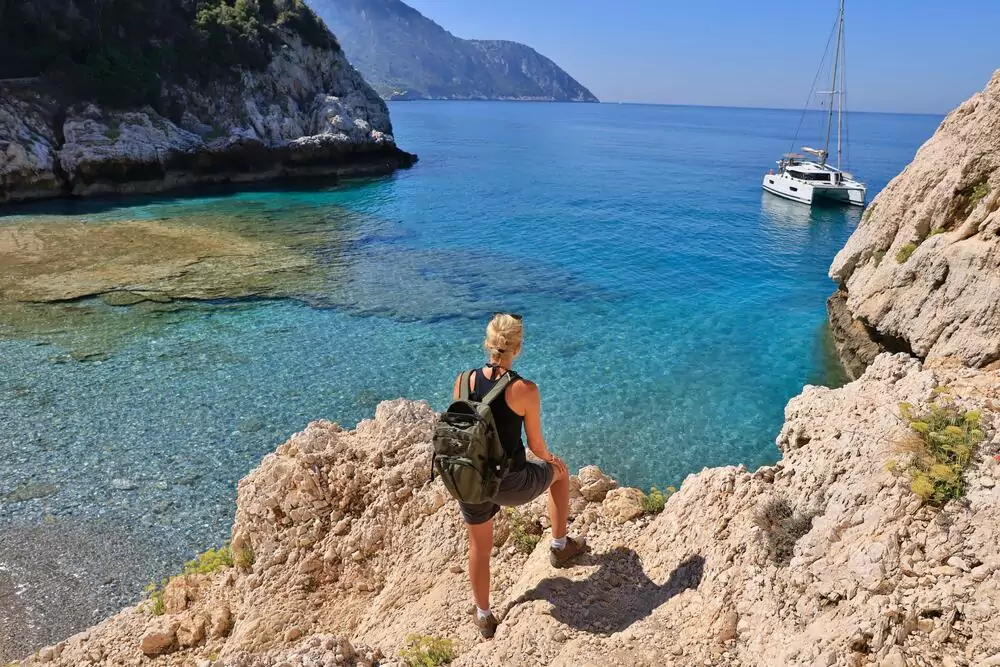 Transfer nach Drakei. In leichtem Auf und Ab geht es auf einem panoramareichen Küstenpfad zu den Teufelsstränden Mikro Seitani und Megalo Seitani. In eine traumhaft schöne Landschaft eingebettet, sind sie nur zu Fuß oder mit dem Boot zu erreichen. Hier lockt eine Badepause im kristallklaren Meer, bevor wir zum Hotel zurückwandern (GZ: 4 Std., + 80 m, - 340 m).
