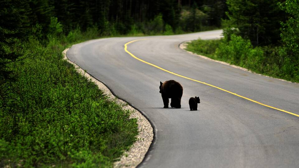 Höher, größer, weiter: Kanada. Spürbar wird das auf dem Weg nach Jasper, denn schnurgerade liegt der Icefields Parkway vor uns. Über den Bow Summit (2069 m) und den Sunwapta Pass (2035 m) bringt er uns zum Jasper-Nationalpark (UNESCO-Welterbe). 280 km. Am Columbia Icefield sind die Folgen des Klimawandels deutlich zu sehen. Die Gletscher ziehen sich zurück, die Berggipfel spiegeln sich in stillen Seen. Wenn sich Autos stauen, dann heißt es: Achtung, Wildtiere an der Straße! Zwei Übernachtungen in einer Chalet-Anlage.