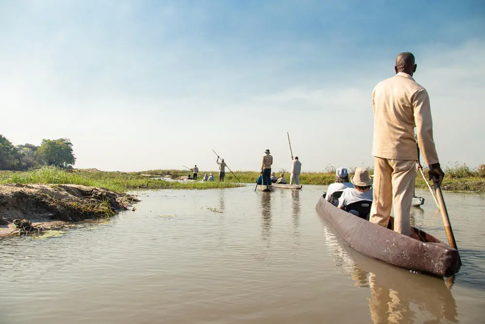 Fahrt gen Osten. Bei Mahango überqueren wir die Grenze zu Botswana. Nachmittags erkunden wir das Okavango-Delta in typischen Holzbooten, den Mokoros. Am nächsten Tag unternehmen wir einen Halbtagesausflug zu den Tsodilo Hills. Die Hügelkette inmitten der Kalahari wurde 1997 zum UNESCO-Welterbe erklärt. Die Fahrt dorthin ist schon ein kleines Abenteuer. Befestigte Straßen sind hier Fehlanzeige. Auf unserer Wanderung entdecken wir eindrucksvolle Zeichnungen der San. GZ ca. 2 Std. Die San, teilweise auch noch als Buschleute bezeichnet, repräsentieren heute eine kleine Population ethnischer Gruppen, die früher große Teile des südlichen Afrikas bewohnten. Am Nachmittag unternehmen wir eine Bootsfahrt inklusive Vogelbeobachtung auf der Panhandle des Okavango-Deltas. Der sogenannte Pfannenstiel kam aufgrund der geographischen Form zu seinem Namen. 2 Übernachtungen in einer Adventure Lodge in Shakawe. 320 km. (2 x F, 2 x M, 2 x A)
