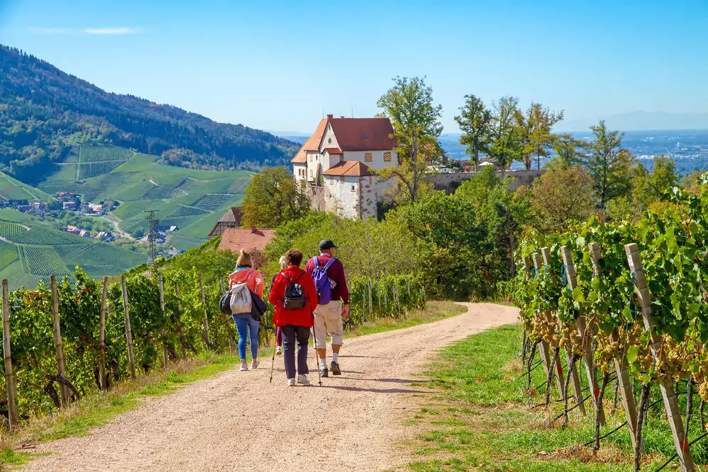 Zum Finale noch einmal ein Höhepunkt für alle Sinne: Denn die Alde Gott Panoramarunde ist eine der schönsten Wanderrouten Badens. Der Weg schlängelt sich durch eine Rebenlandschaft wie aus dem Bilderbuch – dazu Fernblicke bis zur Rheinebene, auf kleine Dörfer mit roten Dächern, bis hinüber nach Straßburg (GZ: 3 1/2 Std., +/- 300 m). Wandern, Weite, Weinberge – schöner kann eine Reise nicht enden!